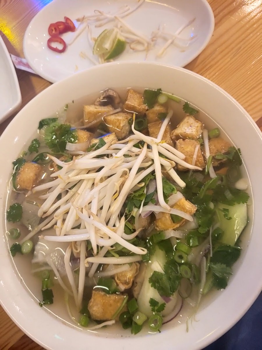 Service was very good, the restaurant is clean and modern and the food was delicious. We had the papaya salad with tofu, pho ga and wonton soup, both had rich and tasty broths. Prices are very reasonable and the quantity of the food satisfying. Thank you!